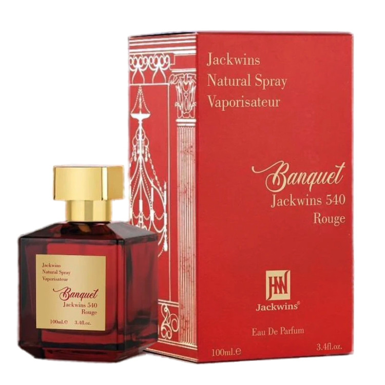 عطر ادکلن بانکوییت رژ 540 Banquet Rouge جانوین جکوینز عطری مردانه زنانه و شیک با رایحه ای گرم و شیرین است و مشابه ادکلن باکارات رژ 540 می باشد. عطر بانکوییت رژ درگروه بویایی چوبی، مشکی،گلی قرار دارد و با ماندگاری و پخش بوی بسیار بالا مناسب برای فصول سرد سال می باشد.